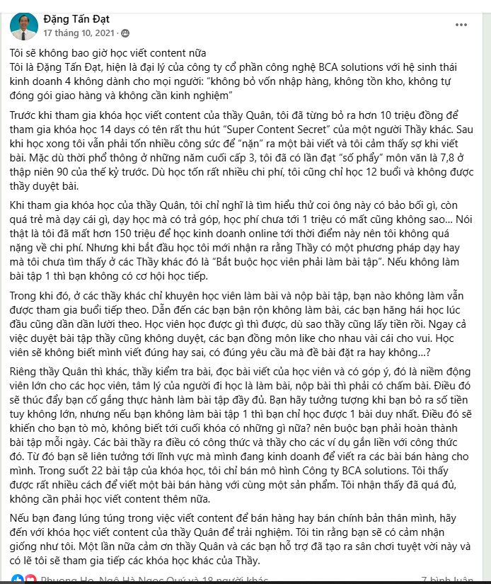 Nếu bạn muốn làm chủ kỹ năng Content Marketing, bạn muốn dễ dàng tạo nên những Content thật hấp dẫn, những mẫu Content cực kỳ chất, những bài viết quảng cáo hiệu quả, những kịch bản Content Viral và những công thức viết thư bán hàng tạo ra doanh số ngay lập tức mà ai cũng có thể áp dụng ngay thì đây chính xác là chương trình dành cho bạn.